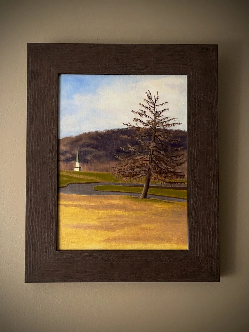 A dead tree, once evergreen, stands alone in the valley’s graveyard. The steeple of the abandoned Baptist church shrinks behind the trim’d-turf hill. For when the tree died and after ‘twas painted, the cemetery managers, with shame and reluctance, decided to cut it down.